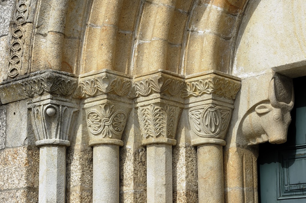 O portal, estilisticamente aproximado ao Mosteiro de Paço de Sousa (Penafiel), ostenta capitéis ornamentados com motivos simétricos de sabor vegetalista e mísulas que assumem a forma de cabeças de bovídeos.