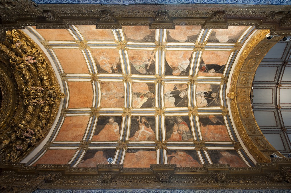 Na Capela do Santíssimo Sacramento abundam elementos arquitetónicos fingidos e a comum ornamentação floral com elementos brutescos ao gosto da celebração barroca.